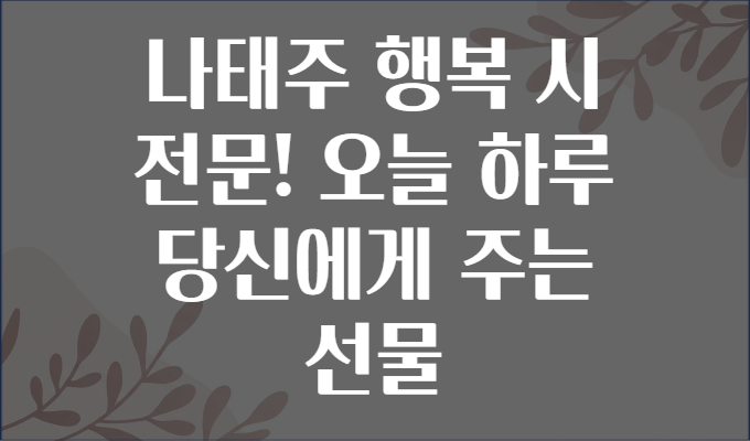 여러분은 오늘 하루, 진정한 행복을 느끼신 적 있으신가요? 매일 반복되는 일상 속에서 작고 소소한 행복을 찾기란 쉽지 않죠. 그런데 정작 행복은 멀리 있는 게 아니라, 우리 주변과 마음속에 있답니다. 나태주 시인의 행복 시는 바로 그런 ‘오늘 하루 당신에게 주는 선물’과 같은 존재예요. 시 한 편으로 삶의 의미와 행복의 가치를 새롭게 발견하는 시간을 가져보는 건 어떨까요? 🥰📖