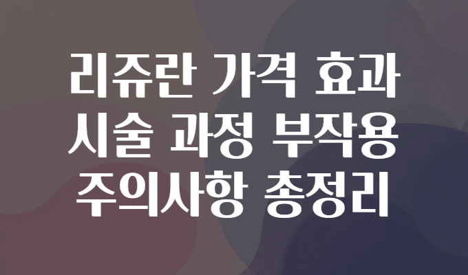 요즘 피부 관리에 관심 있는 분들 사이에서 ‘리쥬란(Rejuran)’이라는 이름을 많이 들어보셨죠? 💬 특히, 노화 방지와 피부 재생에 효과적이라는 점 때문에 많은 분이 관심을 갖고 있어요. 하지만 가격은 얼마나 될까? 🤑 효과는 어떤 편일까? 시술 과정은 어떻게 진행되며, 혹시 부작용이나 주의사항은 없는지도 궁금해하시죠? 🤔 오늘은 리쥬란과 관련된 모든 핵심 정보를 친절하고 상세하게 풀어드릴게요! 🌈