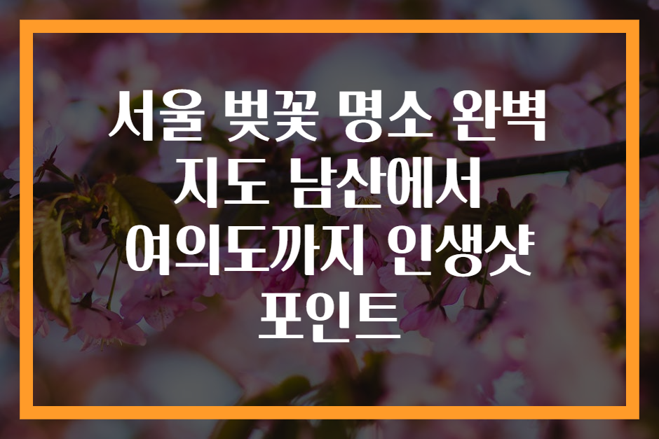 서울 벚꽃 명소 완벽 지도 남산에서 여의도까지 인생샷 포인트