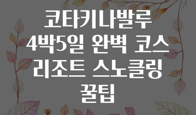 코타키나발루 여행을 준비하면서, 어디서부터 어떻게 시작해야 할지 막막하셨나요? 🤔 아름다운 바다와 열대 자연, 고급 리조트가 어우러진 이곳은 ‘다음 휴가 어디로 가지?’ 고민하는 분들에게 완벽한 선택입니다. 특히 4박 5일 동안 꽉 찬 일정 속에서 리조트와 스노클링, 다양한 액티비티를 즐기고 싶은 분들을 위해 맞춤 코스를 소개합니다! 🌴✈️